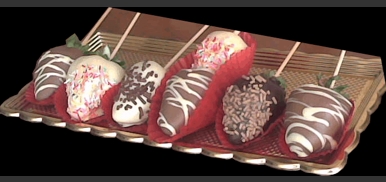 Tenemos las deliciosas Fresas cubiertas, las exquisitas cerezas maceras con licor de cereza o brandy, las manzanas cubiertas y decoradas con chocolate de su preferencia, tambien tenemos manzanas caramelizadas.