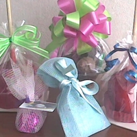 Bolsitas de celofán, morralitos de yute, organza ó simplemente de papel de china. Ideales para eventos sociales, conferencias, presentaciones, bolos de aguinaldo, bautizo,etc.